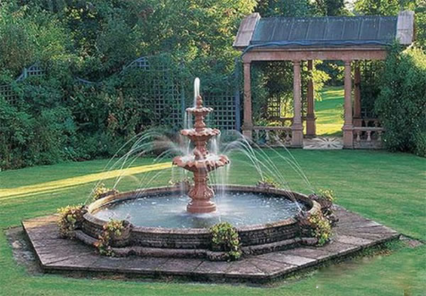 Đài phun nước mang ý nghĩa của sự phát triển phồn thịnh. Nên mẫu thiết kế sân vườn mang phong cách hiện đại kết hợp với vòi phun nước cũng đang được nhiều người ưa chuộng.