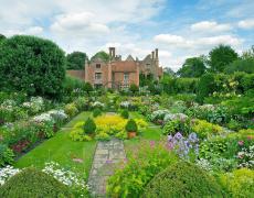 Sân vườn phong cách Châu Âu với nhiều loại hoa rực rỡ, những chậu hoa treo đủ màu sắc tạo khung cảnh tươi mát, có thể làm đẹp cho những ngôi nhà cũ kỹ nhất.