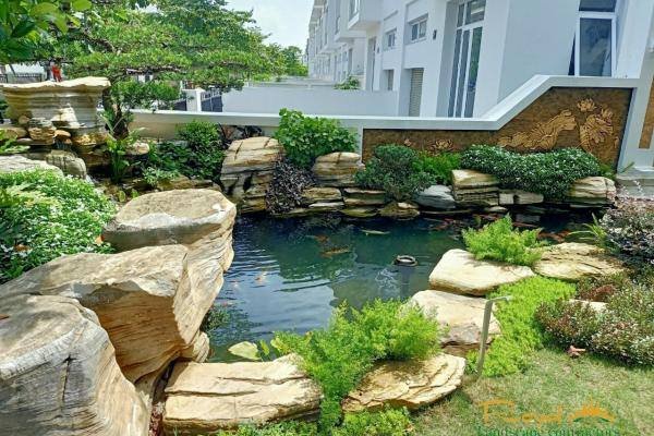 Một nguyên tắc quan trọng khi thiết kế cảnh quan sân vườn biệt thự hợp phong thuỷ mà bạn cần phải lưu ý, đó là “núi sau, nước trước”. Trong phong thuỷ phương Đông quan niệm, nước là đại diện của nội lực, giàu có và viên mãn. Nước giúp thu hút các nguồn năng lượng tích cực và mang tiền của, vàng bạc vào ngôi nhà cho bạn. Còn núi là điểm tựa vững chãi cho sự phát triển thịnh vượng, ổn định và lâu dài. Chính vì thế, một đài phun nước hoặc hòn non bộ được thiết kế phù hợp sẽ góp phần tăng cường năng lượng, tạo nên sự trù phú cần có cho cảnh quan sân vườn biệt thự.