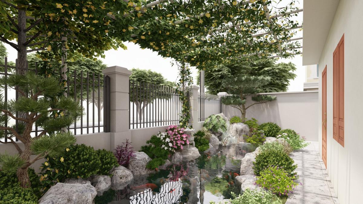 Cảnh quan sân vườn không chỉ mang lại một công trình đẹp, ấn tượng mà nó còn tạo nên không gian sống xanh, gần gũi với thiên nhiên, trong lành, mát mẻ. Đặc biệt, khi thiết kế cảnh quan còn cần đảm bảo yếu tố phong thủy. Việc này sẽ mang lại may mắn, tài lộc, bình an và sức khỏe cho gia chủ. Bên cạnh việc thiết kế cảnh quan cây xanh, gia chủ hiện nay thường yêu cầu thiết kế thêm hồ cá Koi để tăng thêm phần phong thủy, đem lại nhiều may mắn.