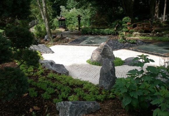- Tạo ra những “khu vườn khác” bên trong không gian của vườn chính. Điều này có nghĩa là bạn có thể thêm những vườn khô và vườn đá nhỏ, chúng được sử dụng như không gian thiền định. Đá là vật trang trí không thể thiếu và ý nghĩa của nó phụ thuộc vào bố cục mà bạn sắp xếp. Những núi đá sừng sững hay những ngọn đá bị bào mòn do song biển mang không gian thiên nhiên bao la hùng vĩ vào nhà bạn. Sẽ tuyệt hơn nữa nếu bạn bố trí them những cây cầu bắc ngang qua dòng suối thơ mọng đó. Điều này làm nên phông màn thiên nhiên tuyệt vời.