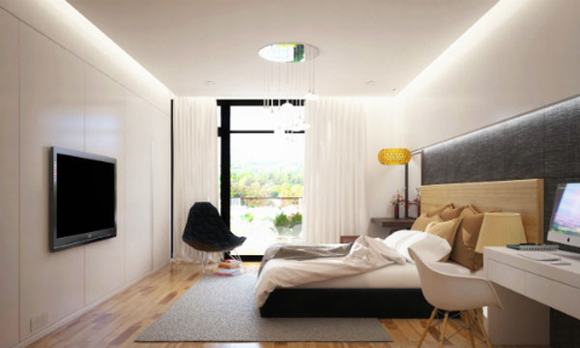 Khi giếng trời kế bên phòng ngủ thì cách bài trí lại thiên về tính thủy và mộc bằng cách tạo trang trí nhẹ nhàng, màu tươi sáng