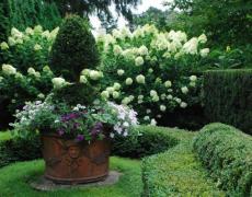 Trong nét kiến trúc của người Pháp nói riêng và người Châu Âu nói chung thì các yếu tố hàng rào cây xanh được tạo hình khối theo các hình học không gian cắt tỉa gọn gàng không chỉ tạo ra ranh giới mà còn có vai trò trang trí tạo không gian xanh trong sân vườn.