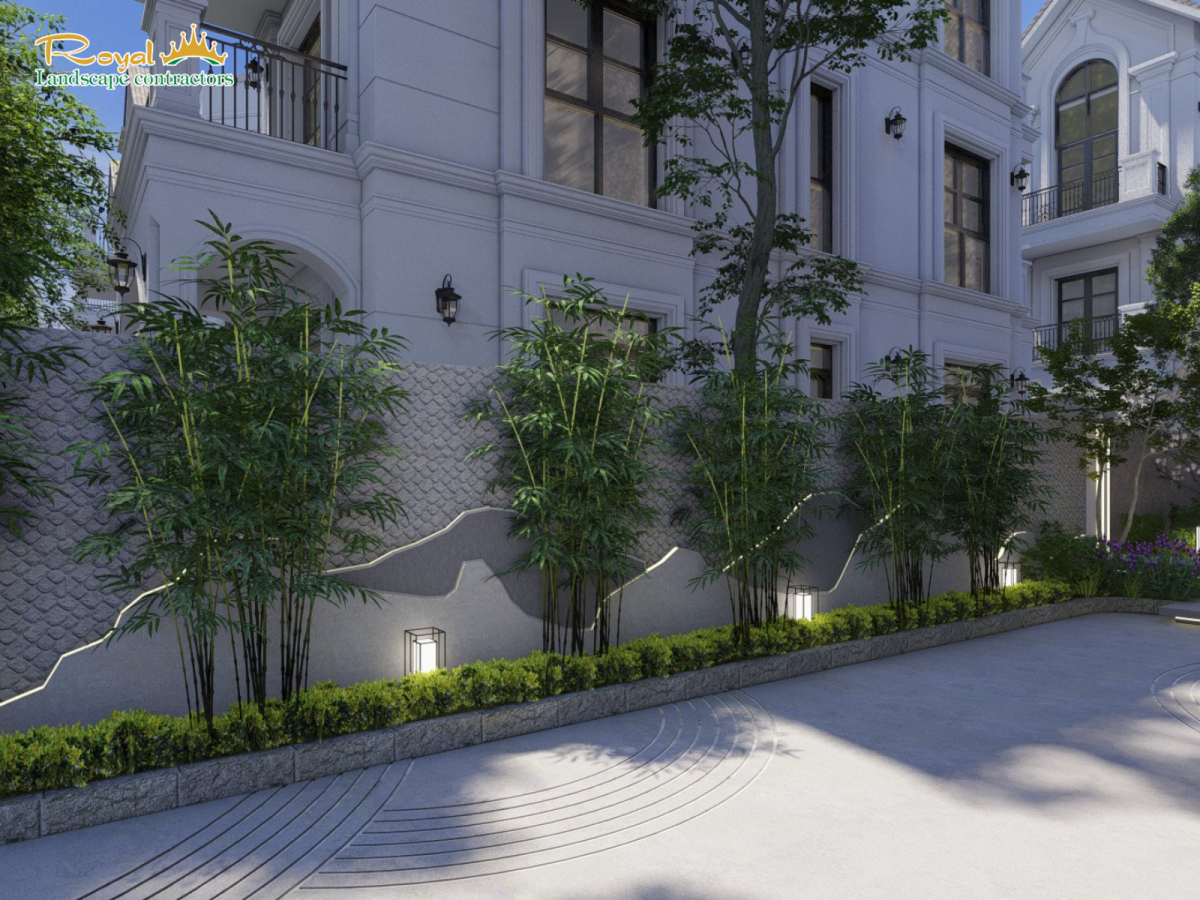Với phong cách phóng khoáng và hiện đại đã đem đến sức hút cho căn biệt thự tại đây, nhưng nhằm tăng thêm sự sang trọng và đẳng cấp hơn cho công trình mà khách hàng và Cảnh Quan Hoàng Gia đã trao đổi và đưa gia mẫu thiết kế thích hợp nhất với sở thích và mong muốn của gia chủ, biến ra một khu sân vườn không chỉ để làm tăng thêm vẻ đẹp của căn nhà mà đây còn là nơi để nghỉ dưỡng và hóng gió.