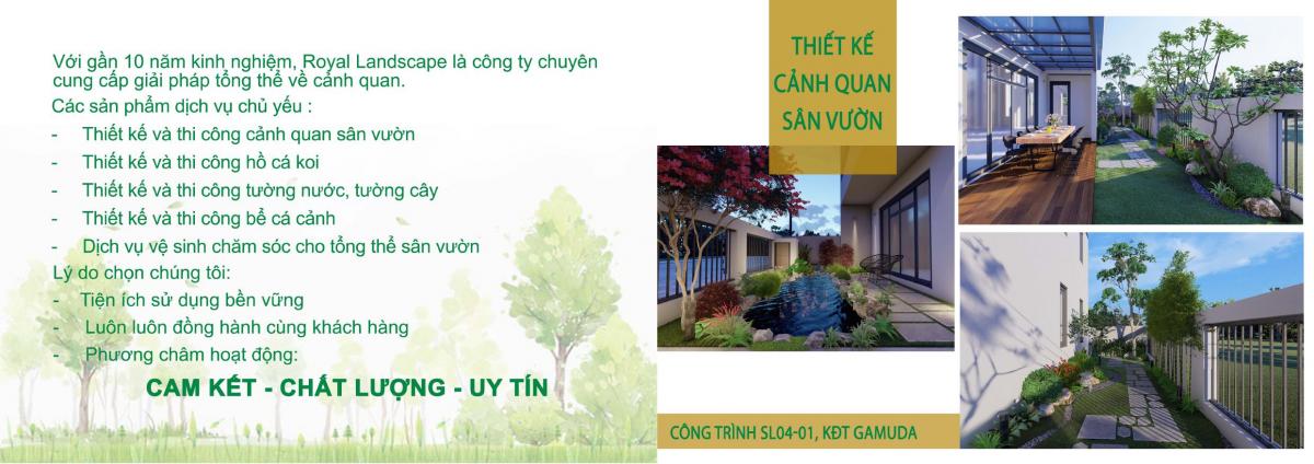 Với gần 10 năm kinh nghiệm trong thiết kế cảnh quan sân vườn, thực hiện hàng trăm dự án ở khắp các tỉnh thành, đến nay Cảnh quan Hoàng Gia không chỉ là đơn vị thiết kế và thi công cảnh quan cho các dự án công trình ở quy mô biệt thự, nhà phố mà còn nhận thi công cho các công trình dự án lớn như khu công nghiệp, nhà máy, trường học, cảnh quan đô thị hay công viên công cộng với quy mô lớn.