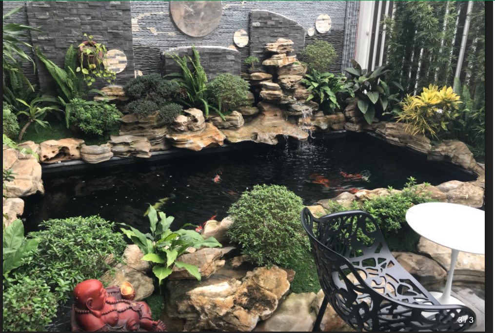 - Hồ nuôi nên được thiết kế âm xuống đất hoặc lững, có mực nước ngang mặt để có thể ngắm và chơi đùa với cá