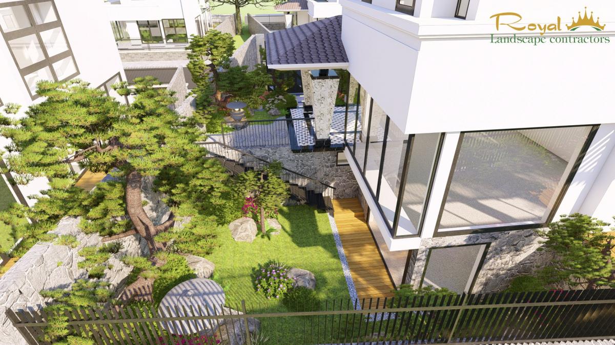 Điểm nổi bật về không gian khu sân vườn này mà Cảnh Quan Hoàng Gia muốn mang đến cho khách hàng không chỉ là không gian hòa mình vào thiên nhiên, mà điểm nhấn với phong cách vườn Nhật còn giúp mỗi thành viên trong gia đình khi trở về đều cảm thấy tâm trạng thoải mái, thanh tịnh và bình an.
