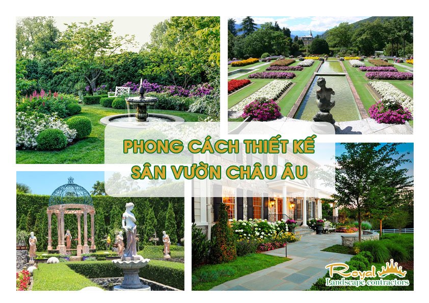 Sân vườn Châu Âu thường khá dễ dàng trong việc thiết kế và lựa chọn. Phong cách đơn giản nhất chính là hoa lá rực rỡ, cây cỏ xanh mướt. Và sự khác biệt này chính là chịu sự chi phối mạnh bởi sự chăm sóc của con người.